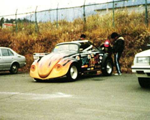 みるからに速そうなビートル。このへんの車はみんなボディはFRPにのせ変えてあります。