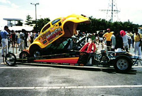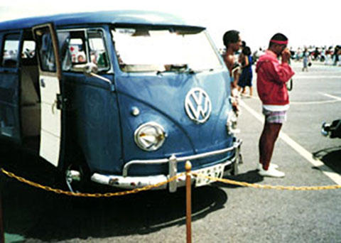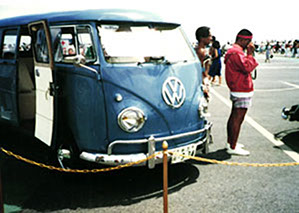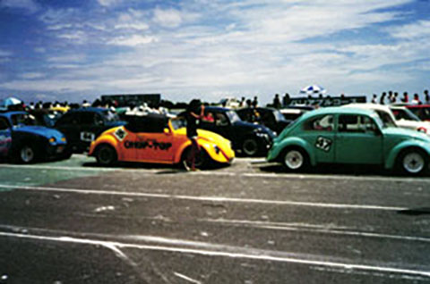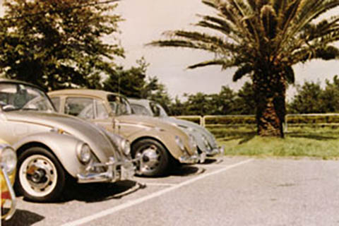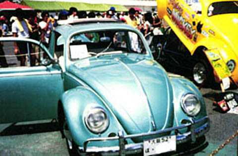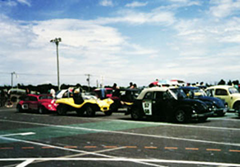 この日は非常に良い天気でした。バグインは必ず晴天です。黄色のビートルは当時名古屋では有名なショップ「チョップ・トップ」のデモカーです。