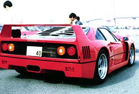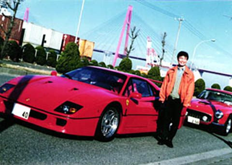 F40との記念撮影。バブルのころF40は2億円といわれてましたね。でも今でも、数千万はしますよね。デビュー当時は大変なインパクトがありました。