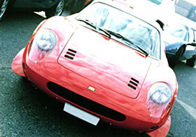 275GTB 4の前姿。バンパーを食わえた姿がも~なんともいえません。なんでこんなんが名古屋にいるんだ~っていう感じです。かっこいい。
