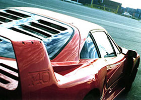 迫力満点のF40のリアビュー。エンジンルームは丸見え!さすがフェラーリ